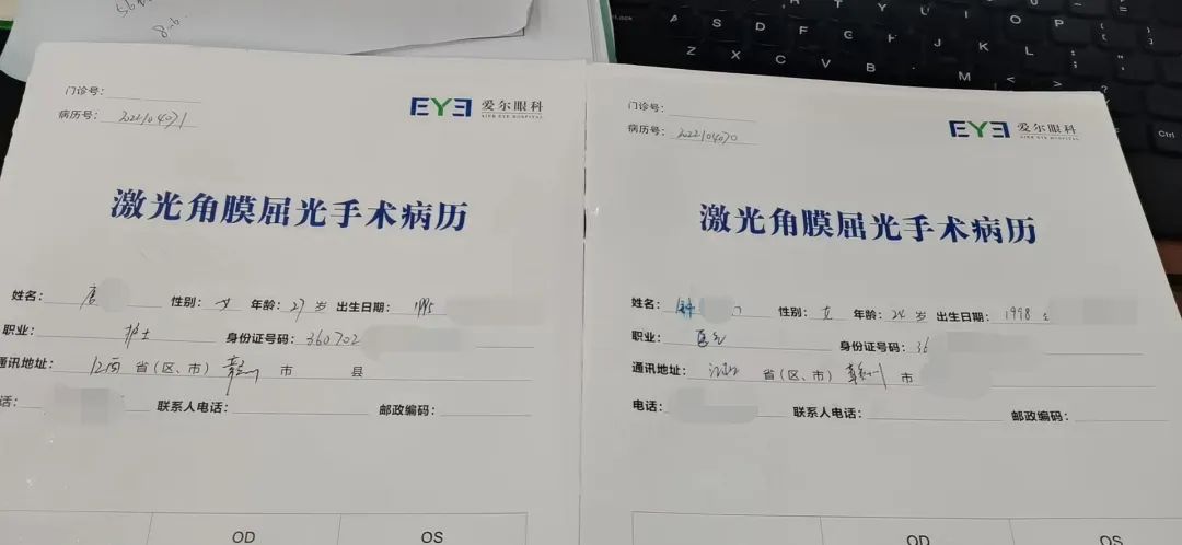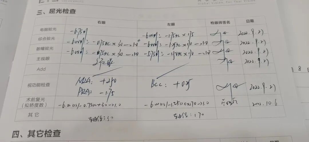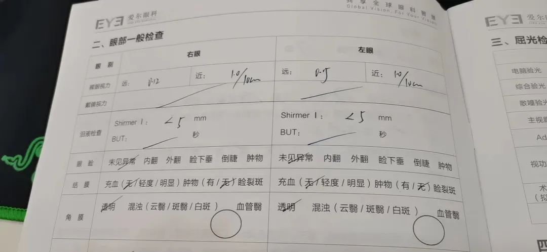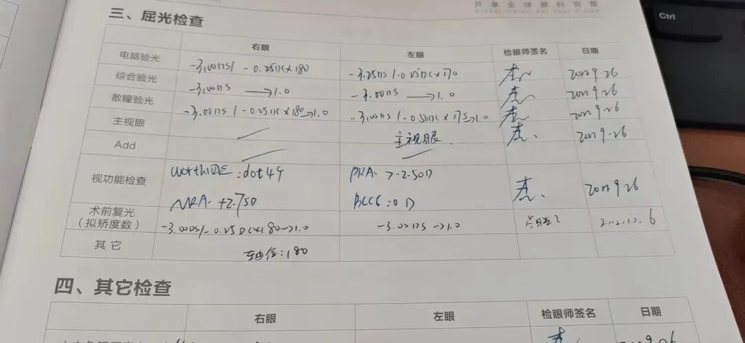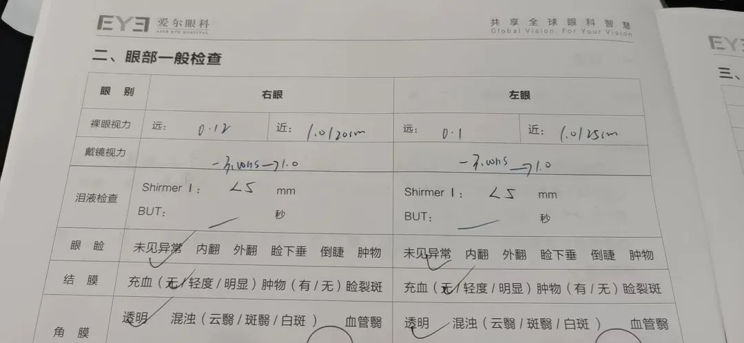 1.术前度数:双眼近视300度