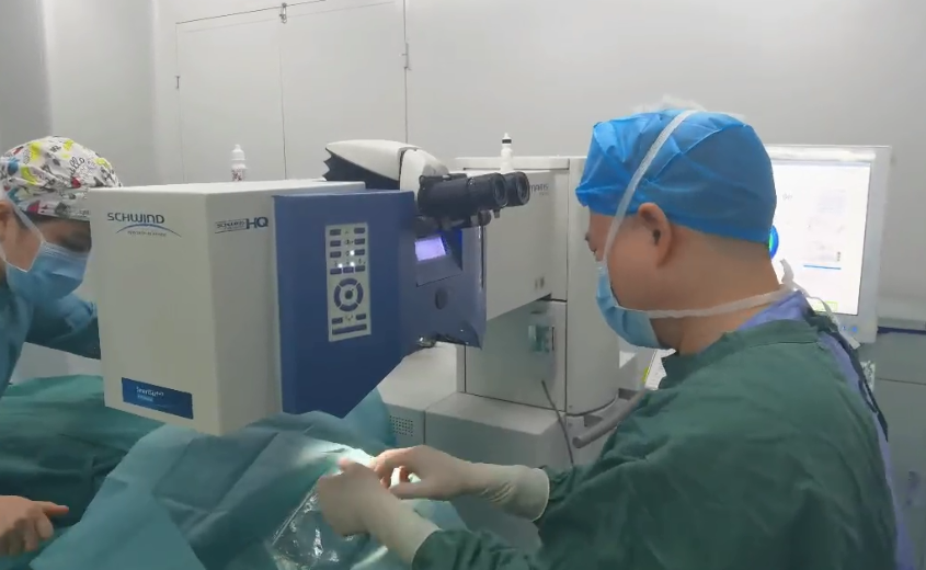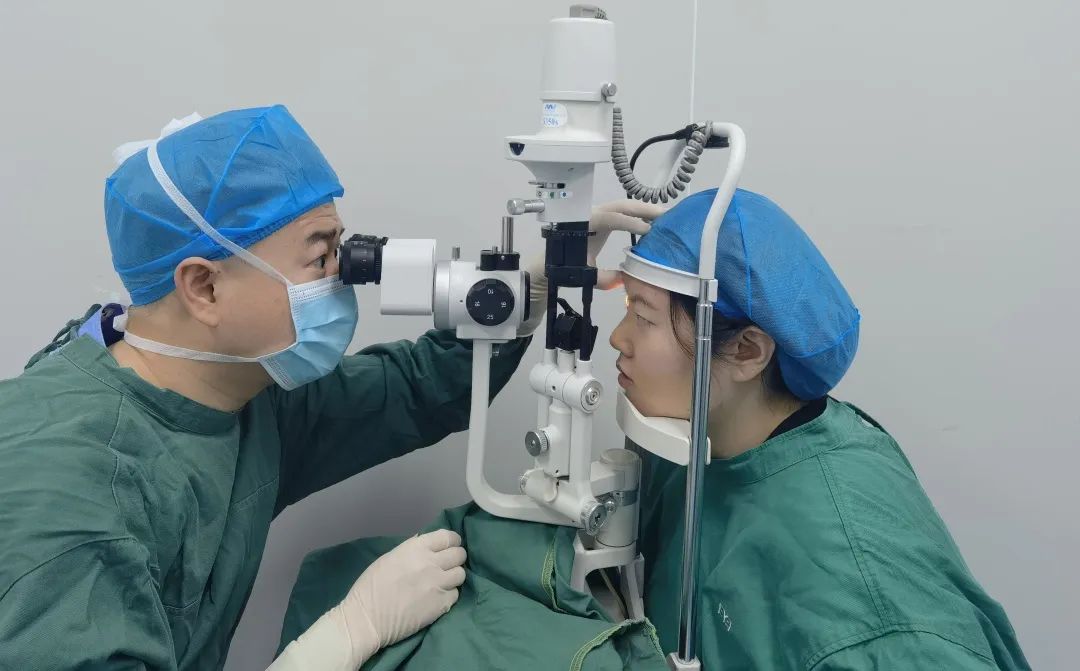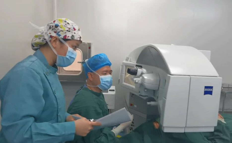 钟医生双眼近视300度,唐护士右眼近视600度+75度散光,左眼575度近视+150度散光,通过近视手术术前检查结果诊断,两人都符合手术条件,并且眼睛条件较好,刘伟院长为她们开展半飞秒近视手术。