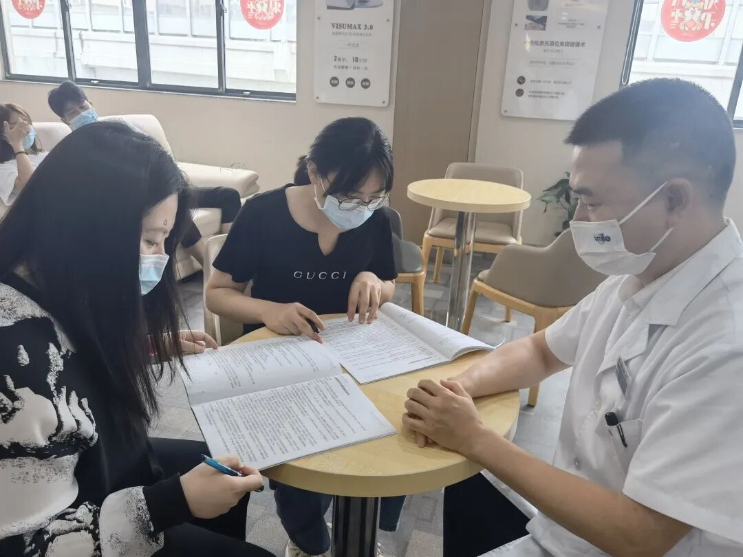 术后第一天,两人相约来到医院做复查,术后初查视力均为双眼5.1,为此她们感到非常的惊喜又意外,远超两人预期,都露出了满意的笑容。在医护人员的指导下,她们认真倾听术后用药的注意事项,提出疑问,相信她们的术后恢复一定也会非常顺利!