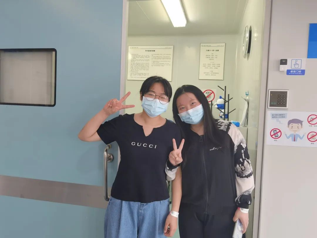 手术当天,她们俩一起进入手术室,换上手术服,共同见证彼此的摘镜过程。她们十分高度认可刘伟院长的技术,表示躺在手术台上,近视手术很快就结束了,术后也无不适感。