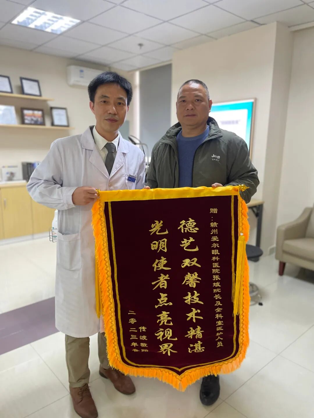 赣州爱尔眼科医院张斌院长表示,一面锦旗,传递的不仅是患者的感激之情,更是对医院技术水平和服务品质的认可,是医院对患者倾情服务的证明,作为医护人员,能为病人提供好的关怀与服务,是他的荣幸。