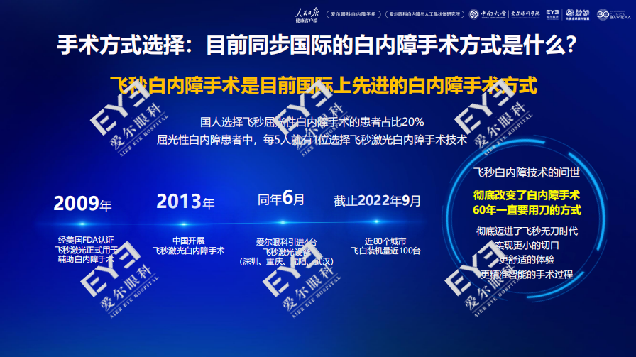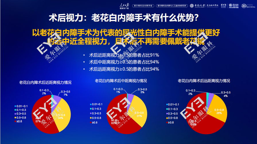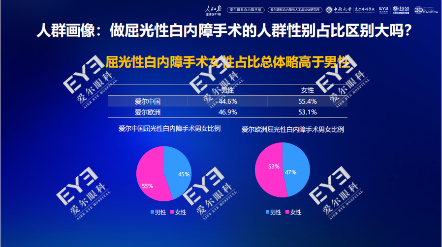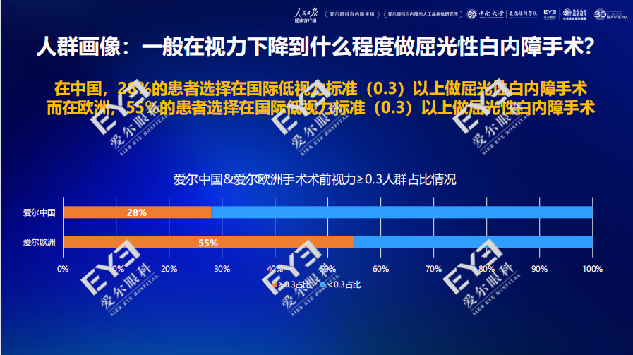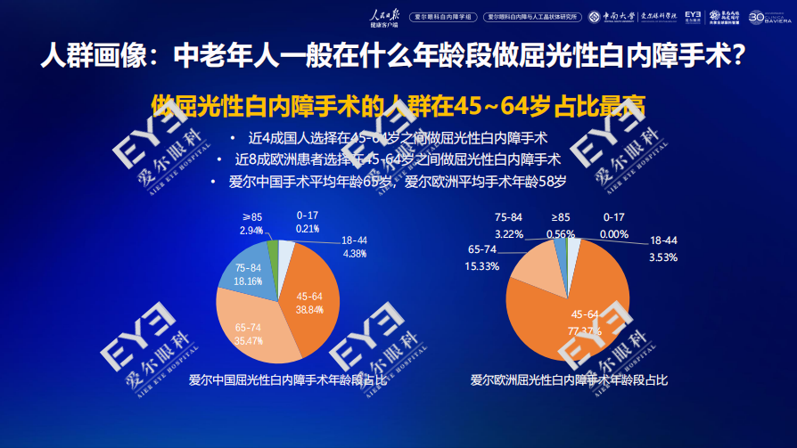 “屈光性白内障手术量三年增长近1.5倍”“45-64岁人群屈光性白内障手术量占比最高,欧洲占比近八成,是中国的2倍”“符合条件的高血压、糖尿病患者也可以做屈光性白内障手术”......11月1日,《中、欧屈光性白内障手术白皮书》发布会暨爱尔飞秒屈光性白内障手术成果发布会在星城长沙举行,我国首份屈光性白内障手术白皮书正式面世。